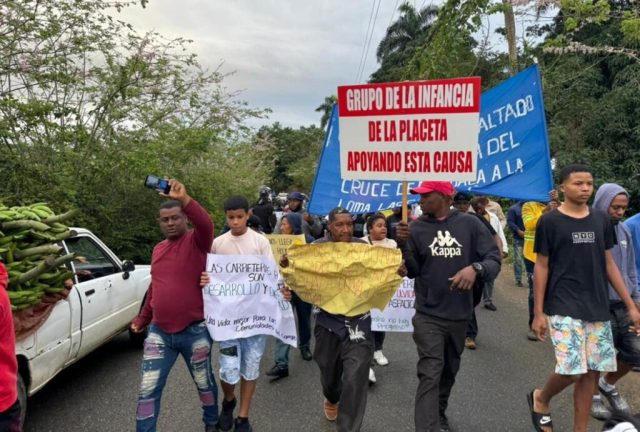 Cotuí. Habitantes de varias comunidades rurales del municipio de Cotuí se movilizaron este martes en una marcha pacífica para reclamar al Gobierno la pavimentación de una carretera agrícola clave y la rehabilitación de caminos vecinales que, según denuncian, llevan años en estado de abandono.