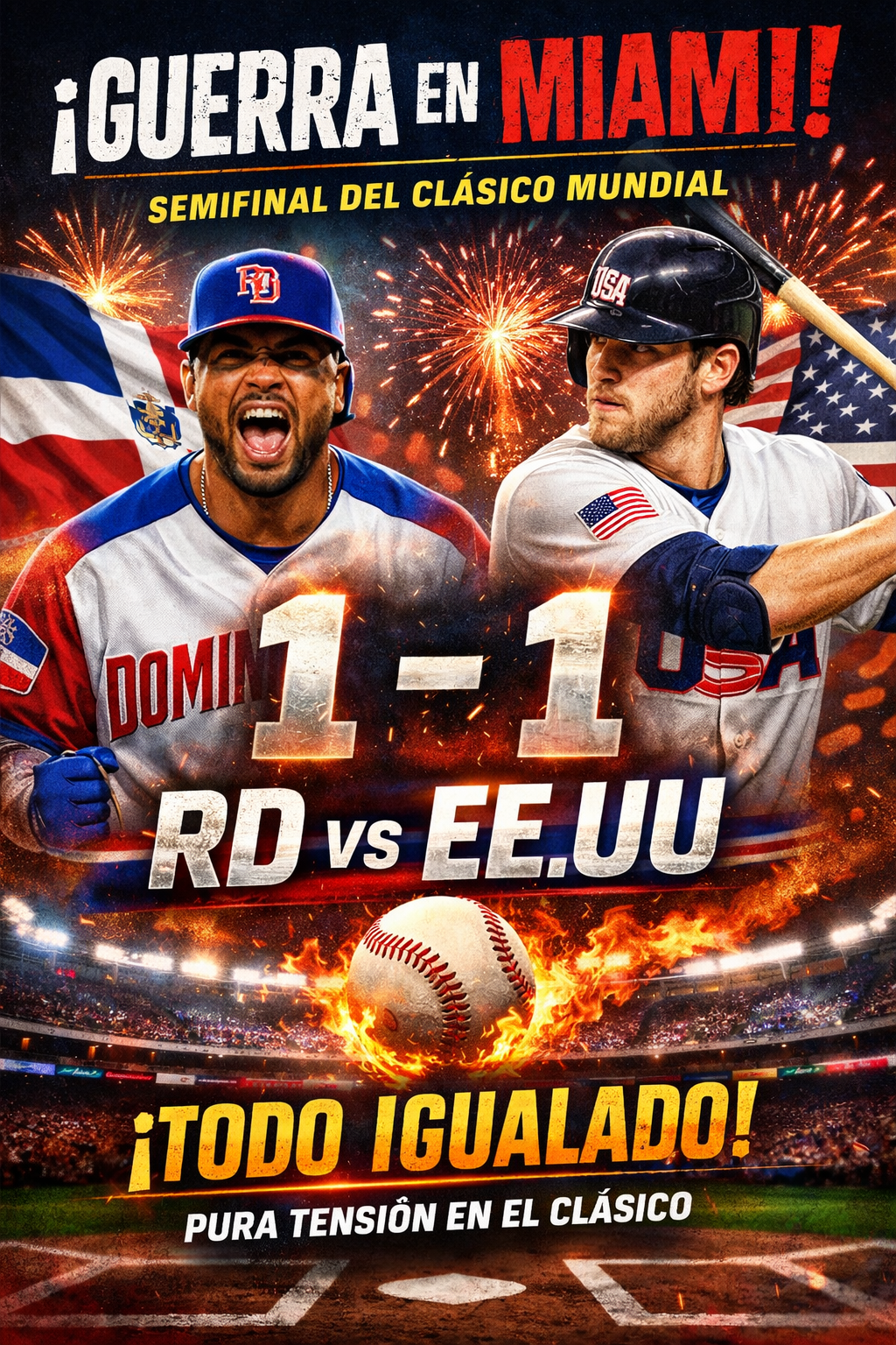 Se calentó Miami: RD y EE.UU. ya están 1-1 en un choque que responde al cartel de semifinal soñada. Nada decidido, tensión total y béisbol de alto voltaje.