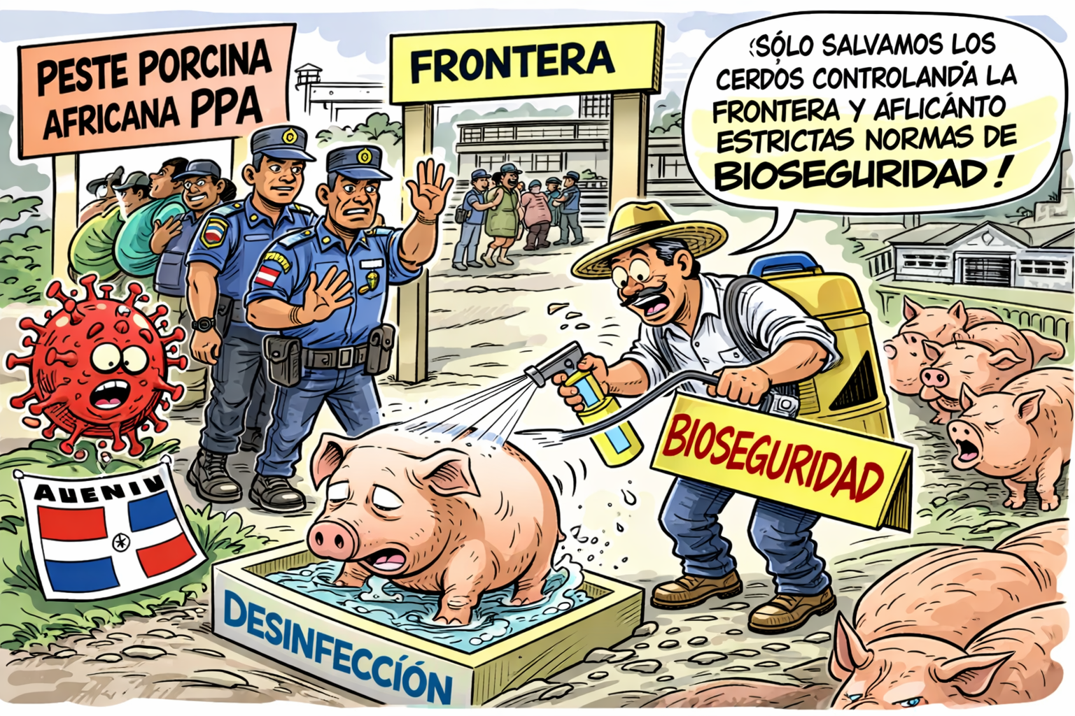 También debe evitarse el despido de técnicos y el debilitamiento de los programas sanitarios. Nuestra red de alerta temprana debe fortalecerse, incluso con presencia en zonas de Haití, si se quiere garantizar el futuro de la industria porcina nacional.