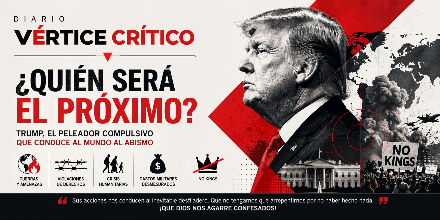 Creo no equivocarme si coloco a su majestad Donald III dentro del perfil del peleador compulsivo, del provocador irracional que actúa sin medir las consecuencias, lo que está conduciendo el mundo al abismo.